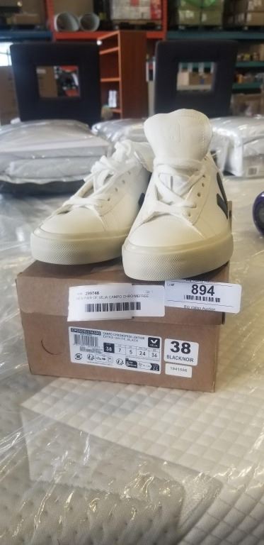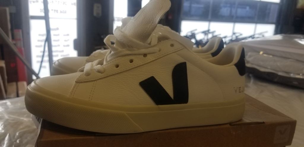 Lot 894 NEW PAIR OF VEJA CAMPO CHROIMEFREE LEATHER EXTRA WHITE / BLACK SIZE US 7