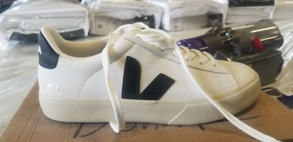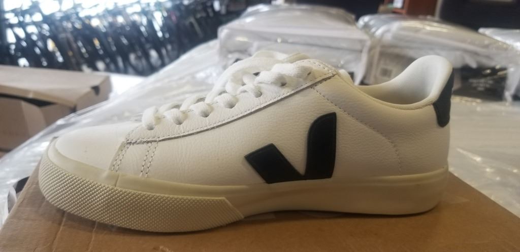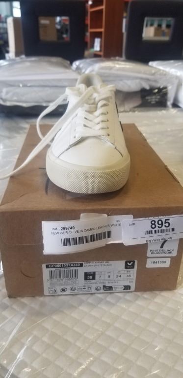 Lot 895 NEW PAIR OF VEJA CAMPO LEATHER WHITE / BLACK SIZE US 7