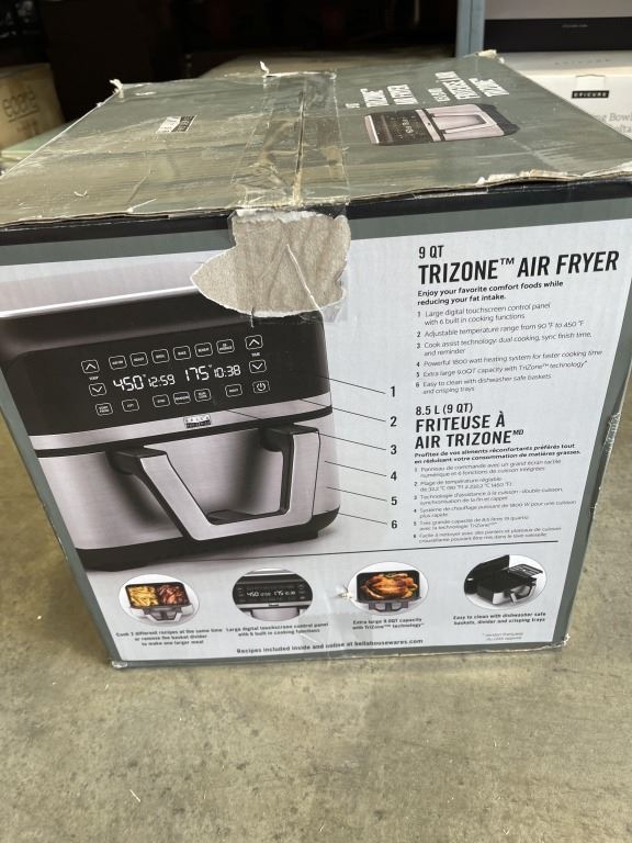BELLA PRO FLEX DUAL ZONE TOUCHSCREEN AIR FRYER - TESTED WORKING, RETAIL $349