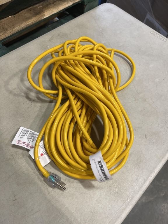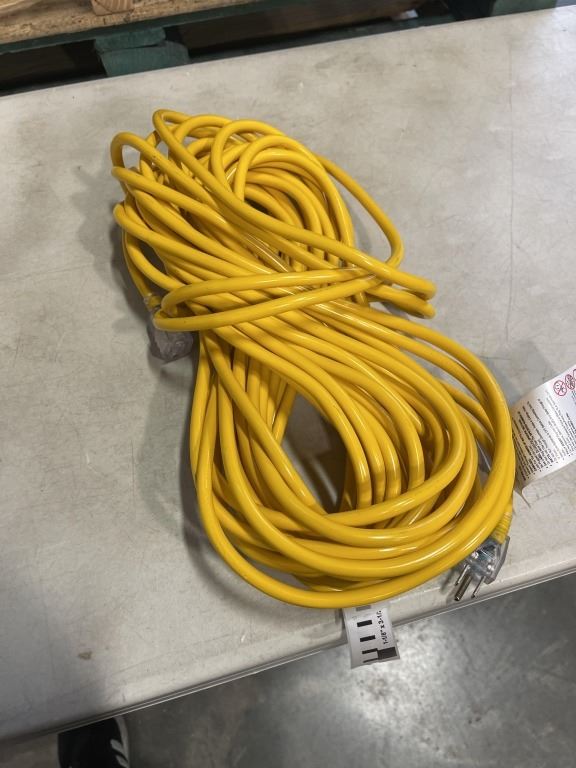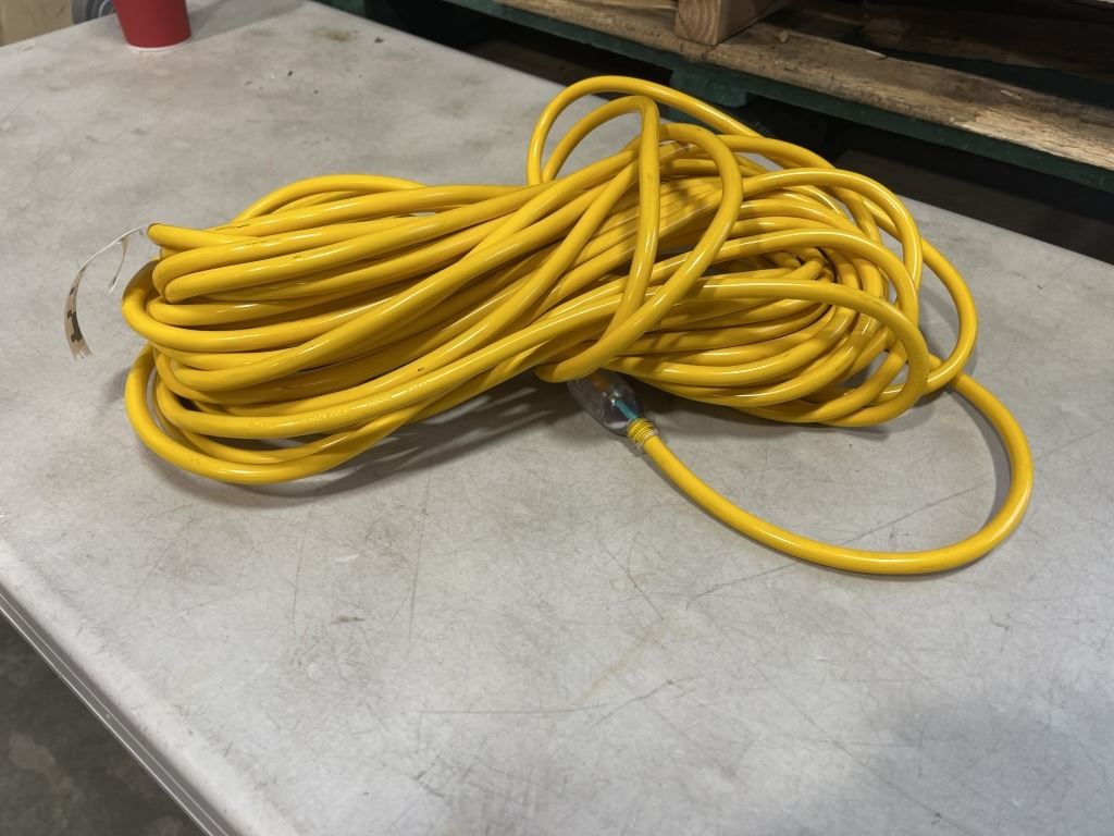 Lot 952 AS NEW 75FT YELLOW INDOOR OUTDOOR HEAVY DUTY LIGHTED 3 WIRE GROUNDED EXTENSION CORD 14AWG