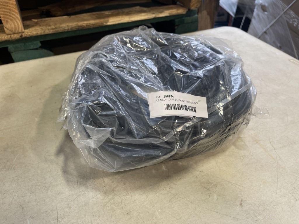 Lot 953 AS NEW 100FT BLACK INDOOR OUTDOOR HEAVY DUTY LIGHTED 3 WIRE GROUNDED EXTENSION CORD 12AWG