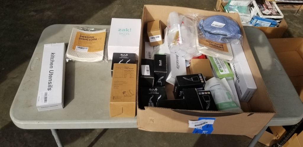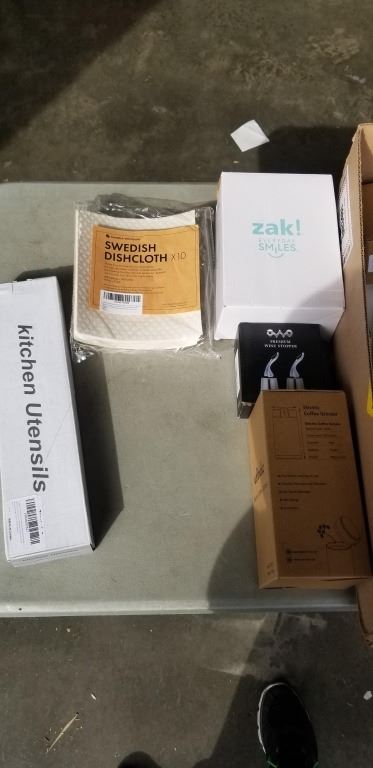 Lot 963 NEW AMAZON OVERSTOCK ITEMS INCULDING ELECTRIC COFFE GRINDER SWEDISH DISHCLOTHES AND PREMIUM WINE STO