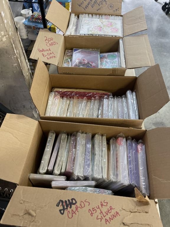 4 BOXES OF ASSORTED VINTAGE GREETING CARDS, PACKS OF 12 APPROX 800 TOTAL