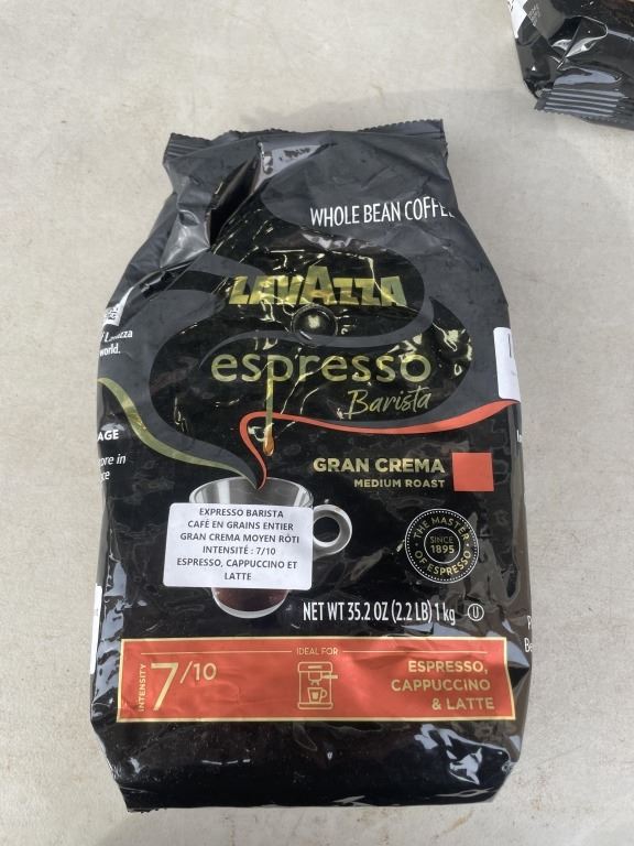 3 NEW BAGS OF LAVAZZA ESPRESSO BARISTA GRAN CREMA MEDIUM ROAST WHOLE BEAN COFFEE, 1KG EACH
