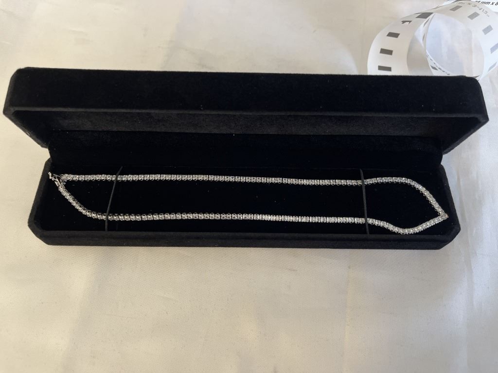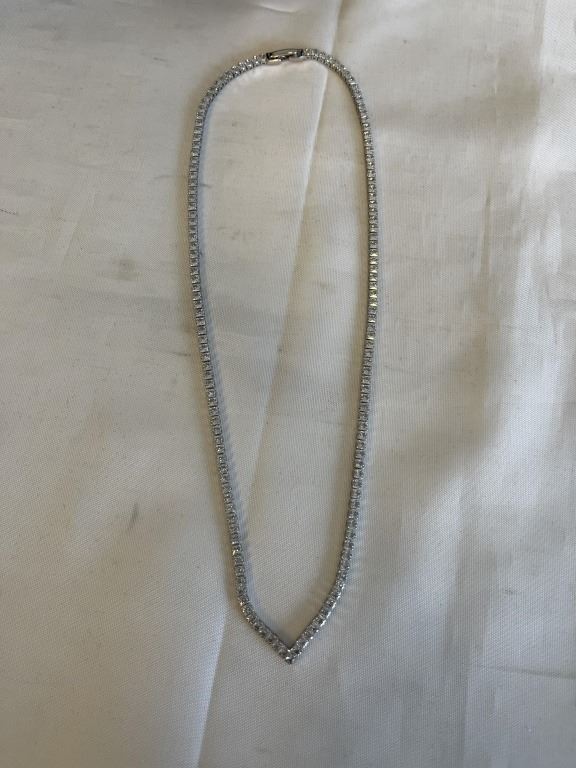Lot 1057 NEW PLATINUM PLATED 2.5MM PRINCESS CUT SIMULATED DIAMOND (CZ) TENNIS NECKLACE 18" LONG
