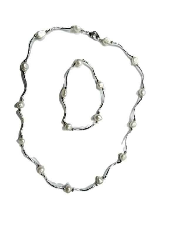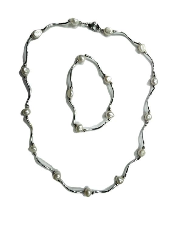 CULTURED PEARL NECKLACE AND BRACELET, W/A $375.00.