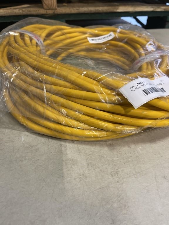 AS NEW 75FT YELLOW INDOOR OUTDOOR HEAVY DUTY LIGHTED 3 WIRE GROUNDED EXTENSION CORD 14AWG