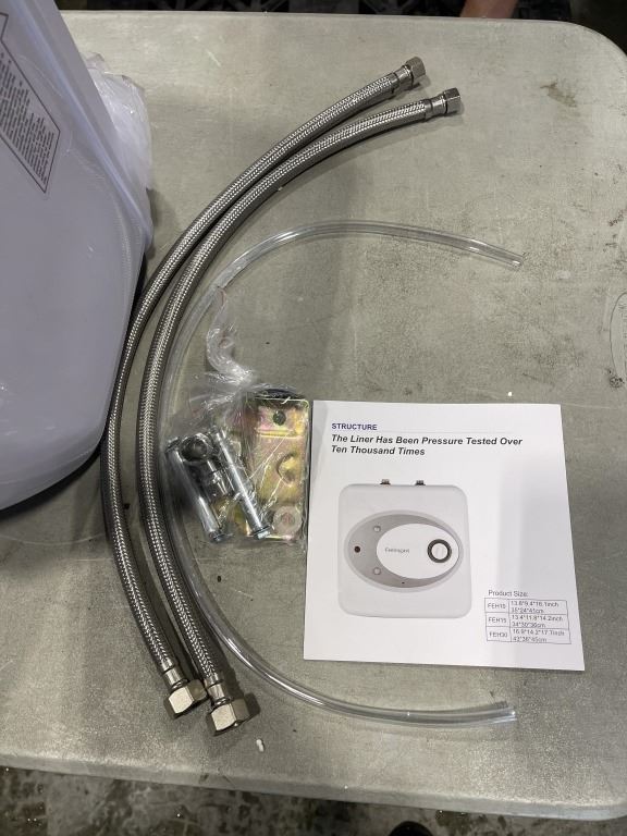 Lot 1118 NEW FEELROGAST 8 GAL. (30L) ON DEMAND HOT WATER HEATER, WITH INSTALL ACCESORIES AND SUPPLIES