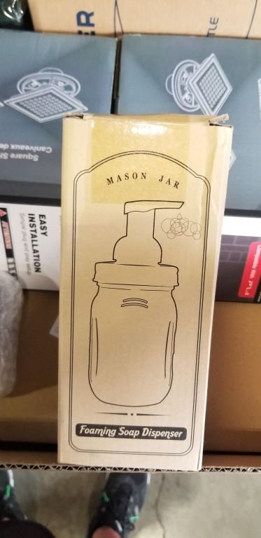 NEW AMAZON OVERSTOCK ITEMS INCLUDING SQUARE SHOWER DRAIN MASON JAR SOAP DIPENSER AND SHOWER CURTAINS