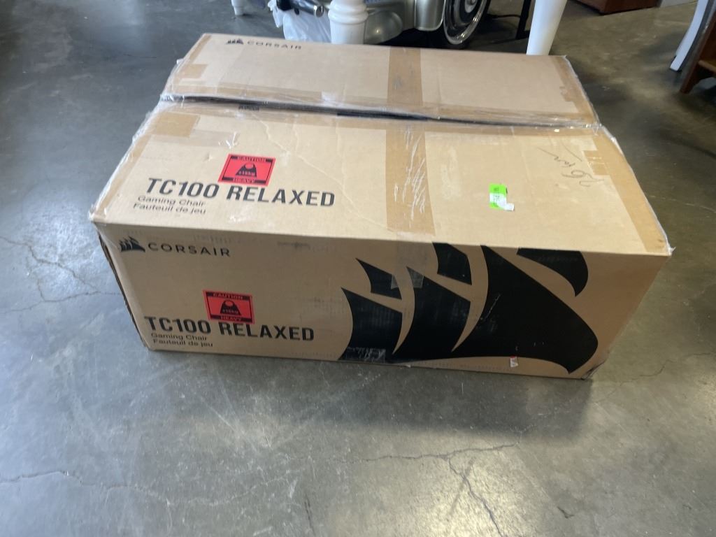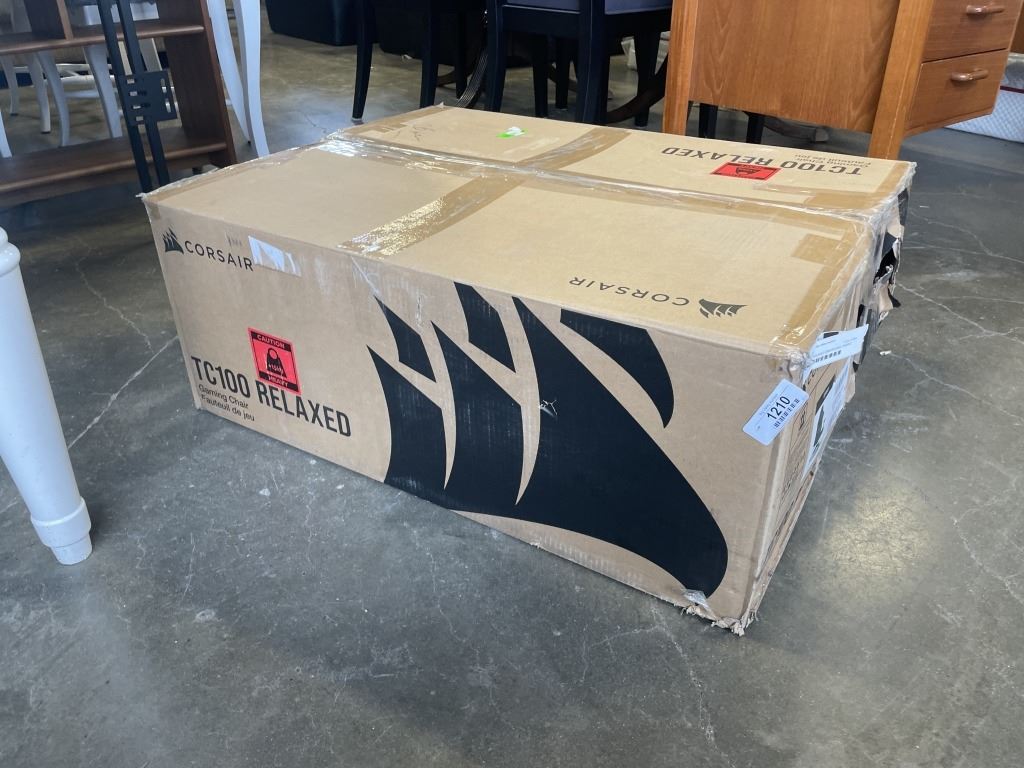 Lot 1210 CORSAIR TC100 RELAXED ERGONOMIC FABRIC GAMING CHAIR, RETAIL $364, BRAND NEW, MISSING WHEELS
