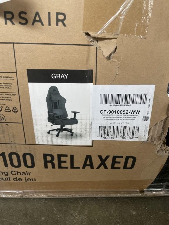 CORSAIR TC100 RELAXED ERGONOMIC FABRIC GAMING CHAIR, RETAIL $364, BRAND NEW, MISSING WHEELS