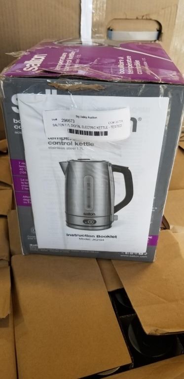 Lot 1220 SALTON 1.7L DIGITAL ELECTRIC KETTLE - TESTED WORKING, RETAIL $89