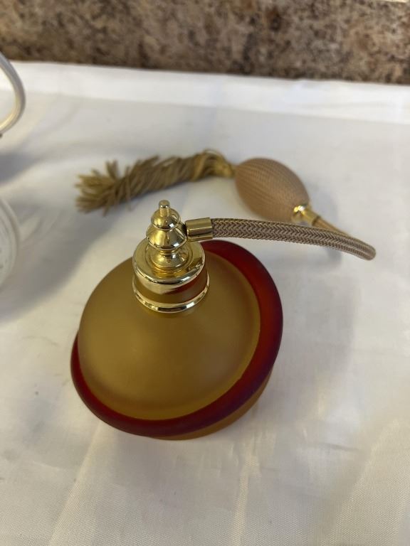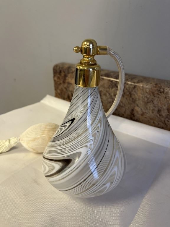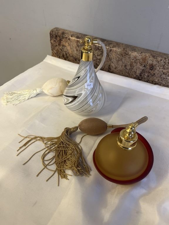 Lot 1230 2 VINTAGE VENETIAN GLASS PERFUME BOTTLES W/ ORIGINAL ATOMIZERS