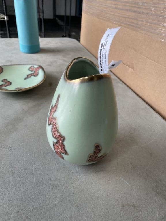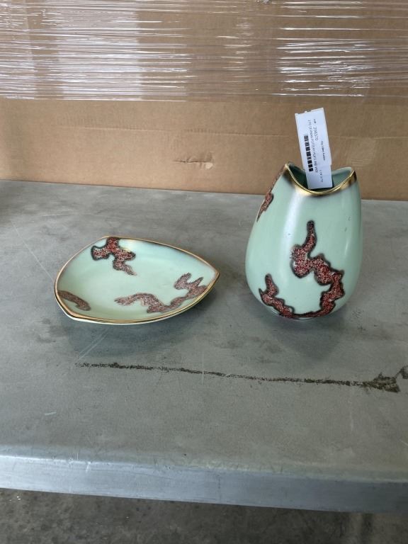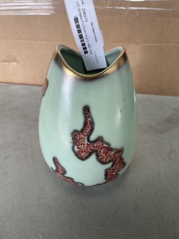 Lot 1232 2 PC GERMAN POTTERY PLATE AND VASE