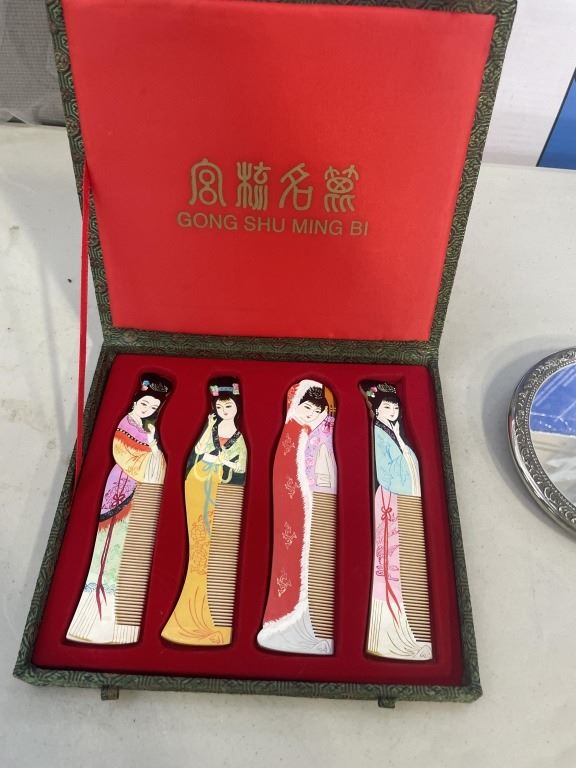 VINTAGE VANITY BRUSH SET AND CASED COMB SET