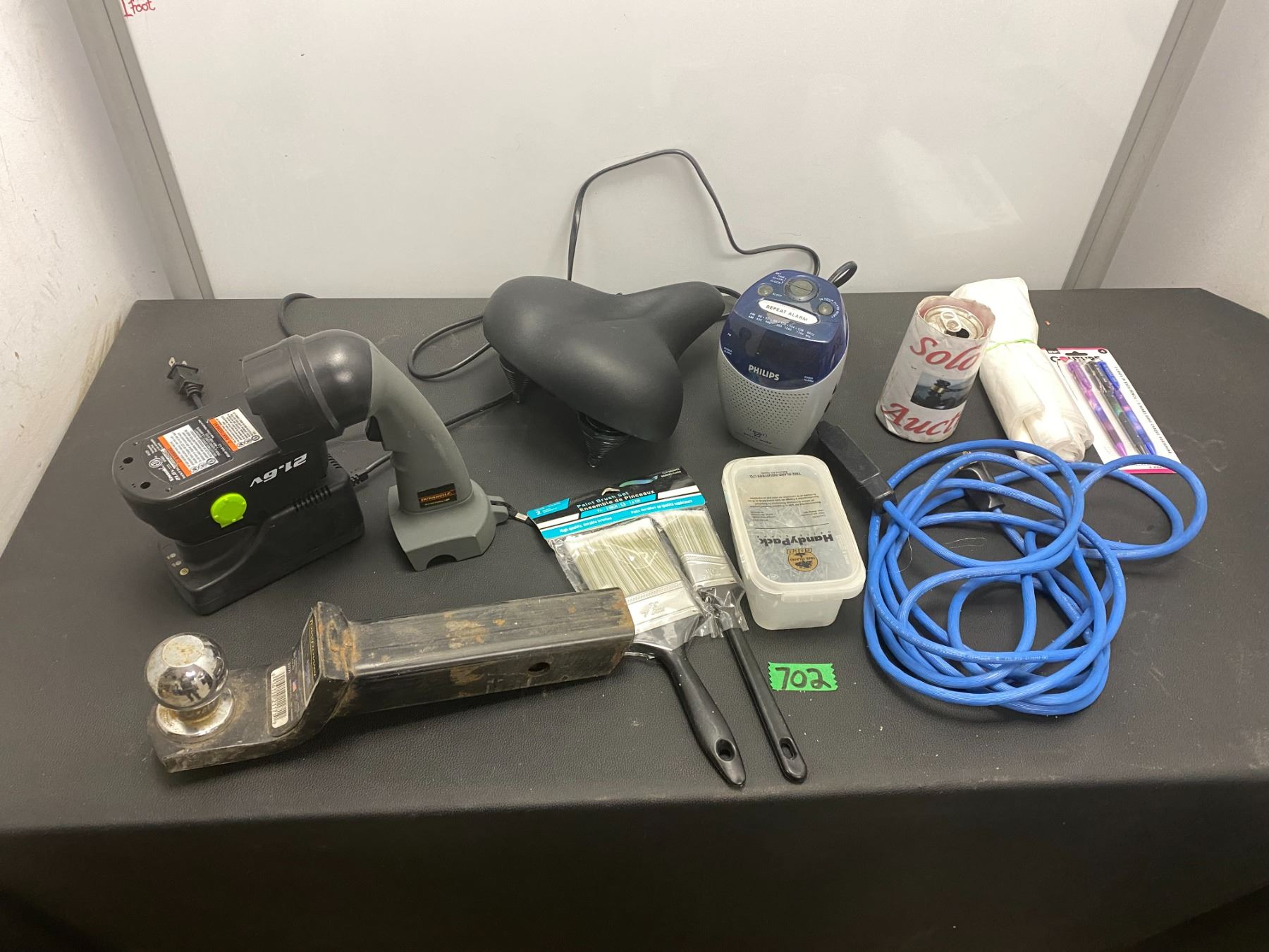 Lot 702 Lot of tool including trailer hitch, paint brushes and more