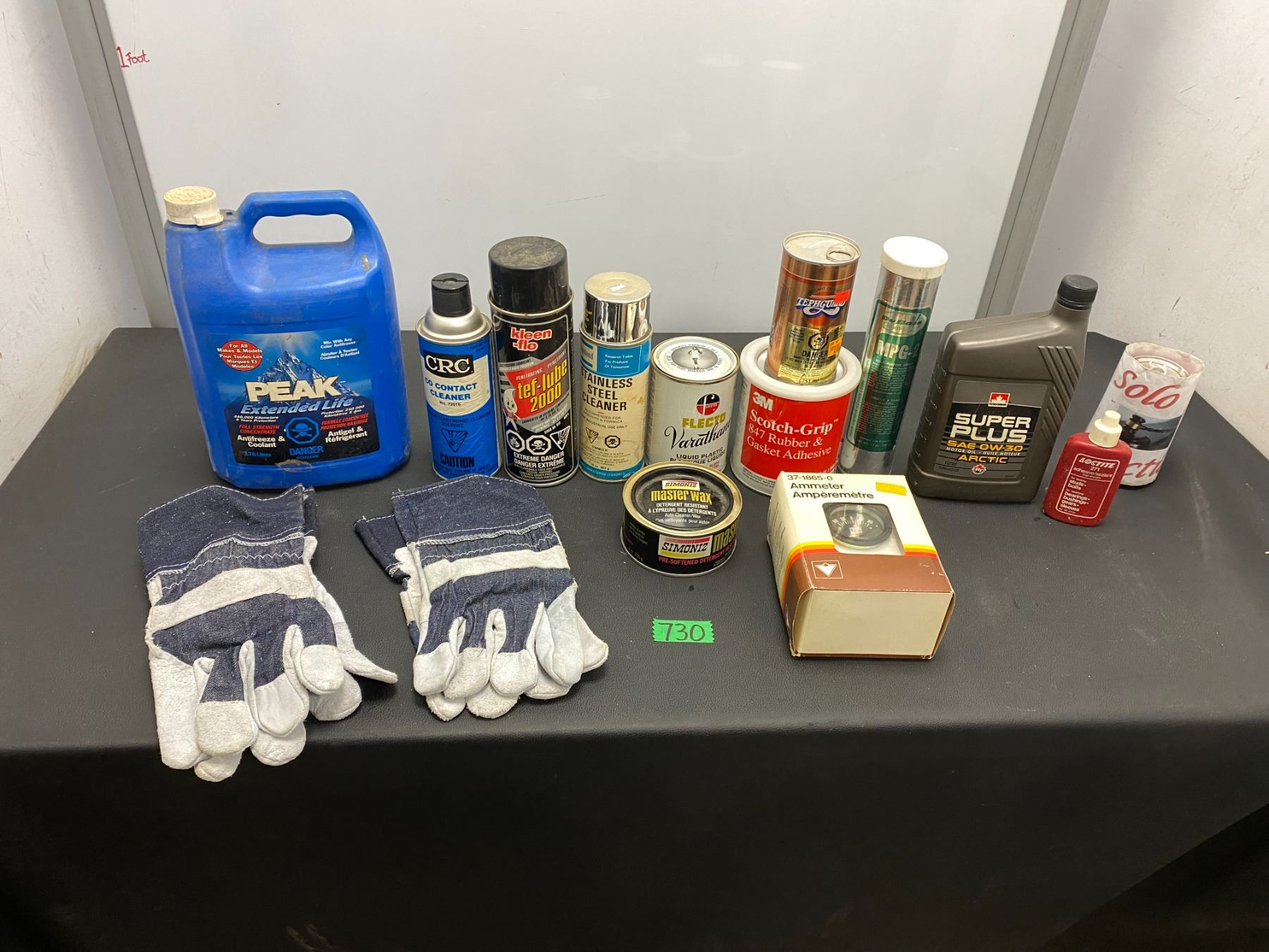 Lot 730 Lot of car care products and 2 pairs of work gloves