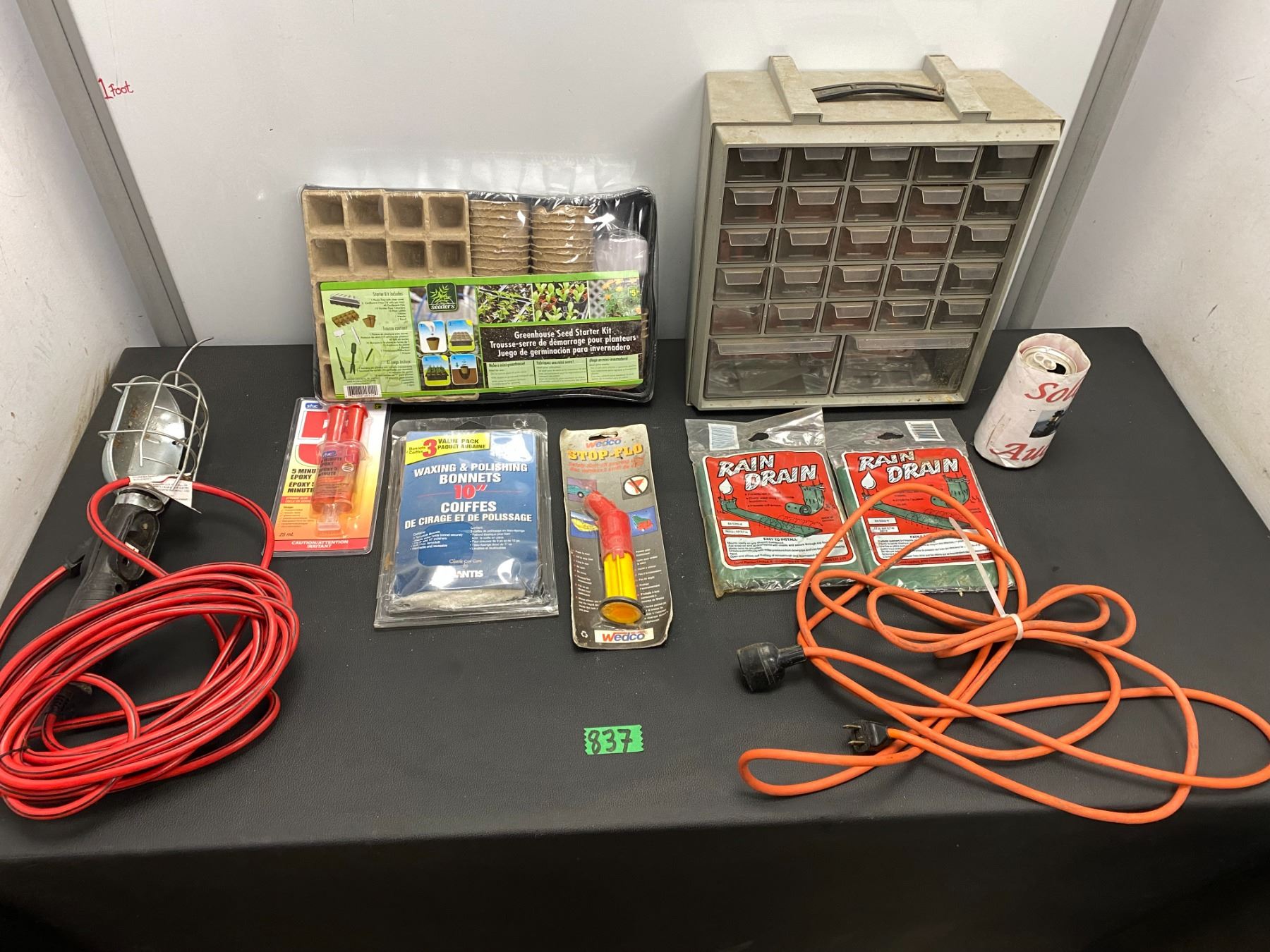 Lot 837 Lot of tool items including trouble light, extension cord, tool case and more