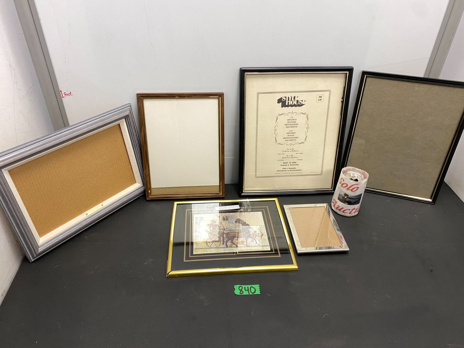 Lot 840 Lot of 6 picture frames including a framed Egyptian print size 6" x 8"