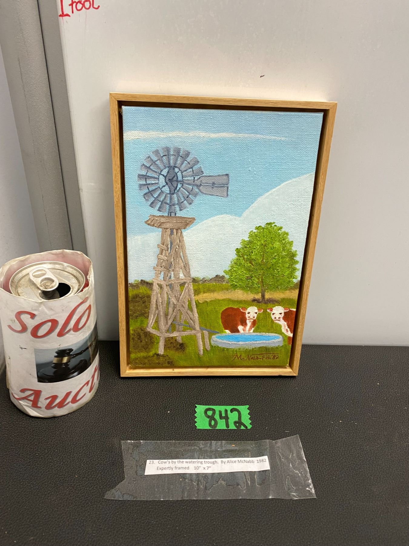 Lot 842 Cow's by the watering trough by Alex McNabb 1982 framed 10" x 7"