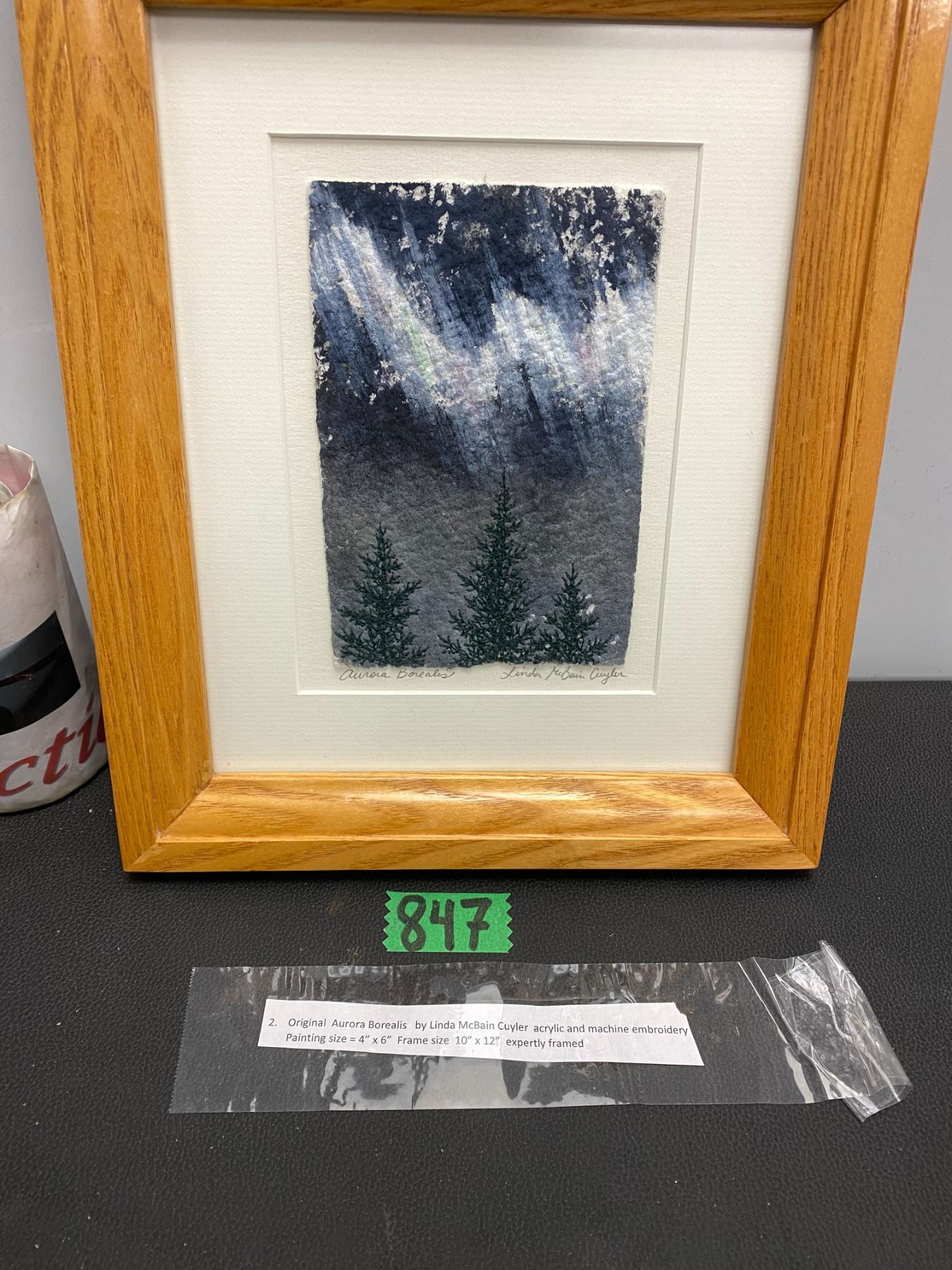 Lot 847 Original painting "Aurora Borealis by Linda McBain Cuyler, acrylic and machine embroidery painting e