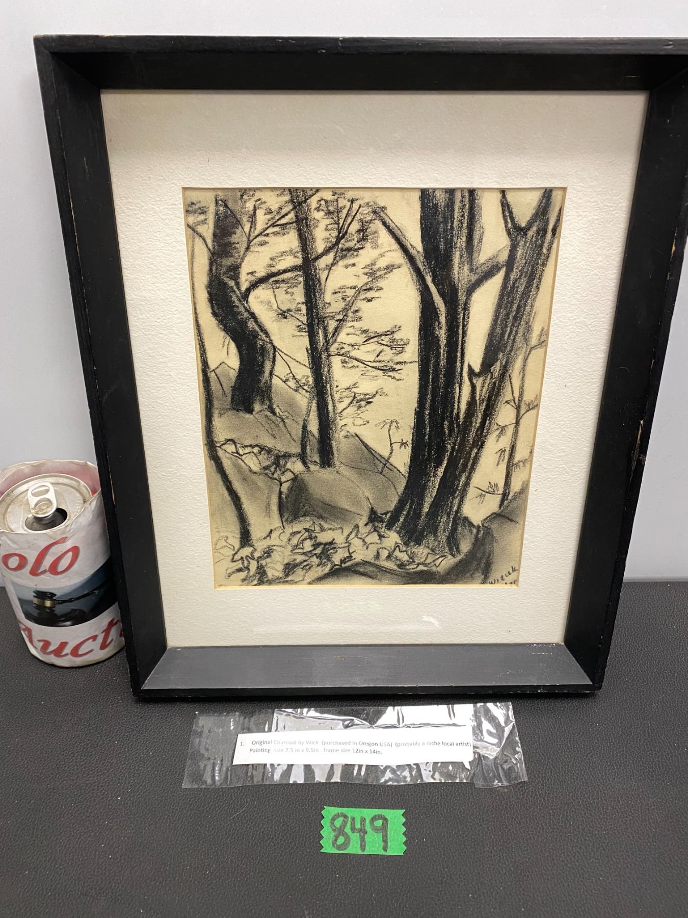 Lot 849 Original charcoal by Wick, framed size 12" x 14"