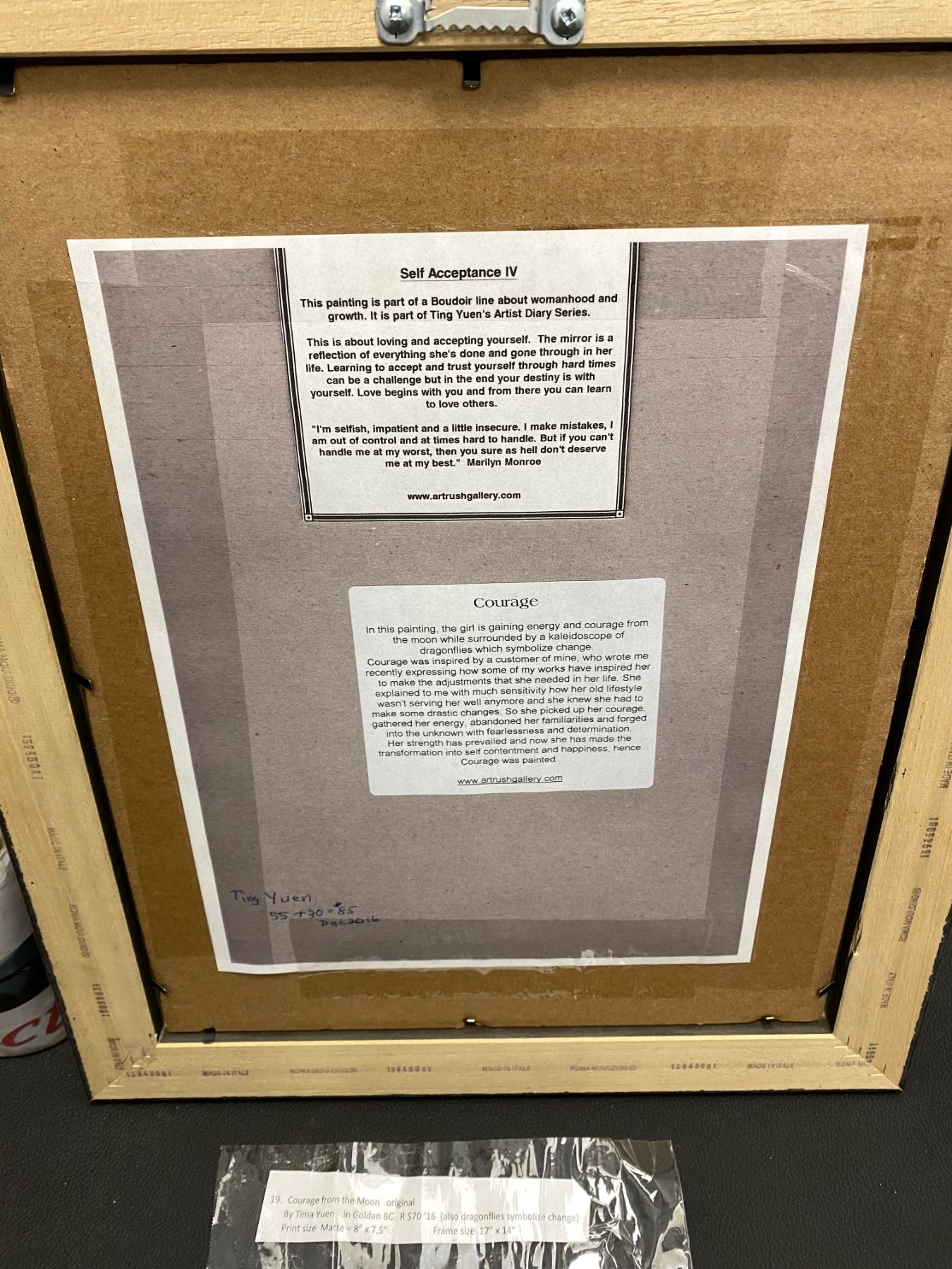 Lot 850 "Courage from the Moon" original art by Tima Yuen measures 17" x 14" framed