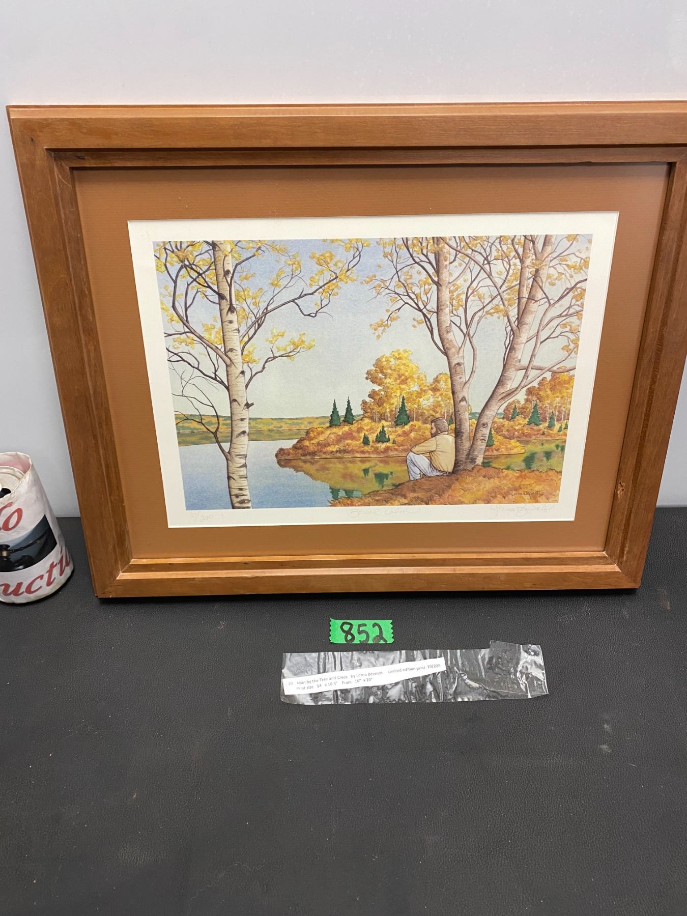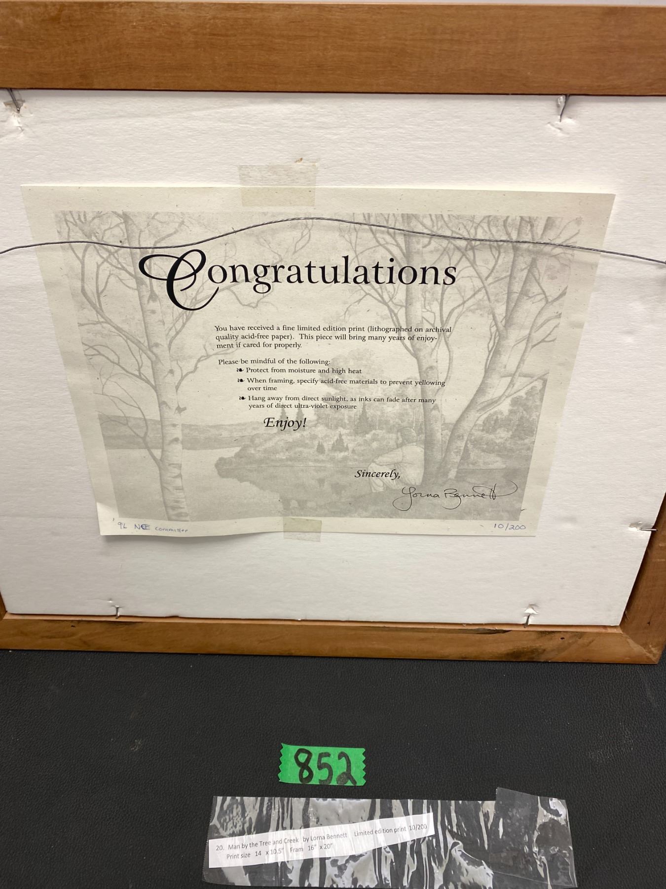 Lot 852 "Man by the Tree" by Lorna Bennett, limited edition print numbered 10/200 framed 16" x 20"