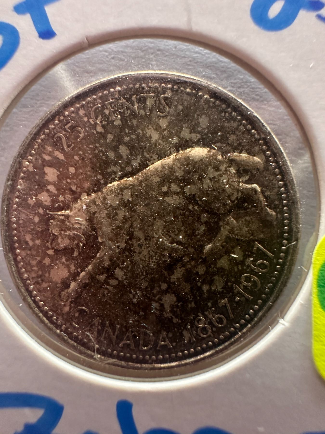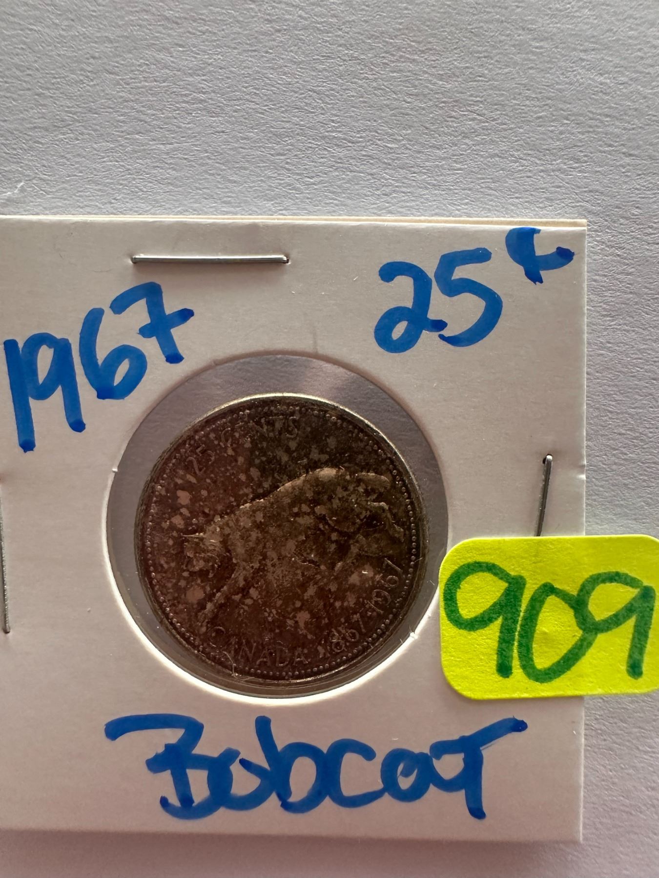 Lot 909 1967 Canadian silver centennial 25 cent coin featuring a Bobcat