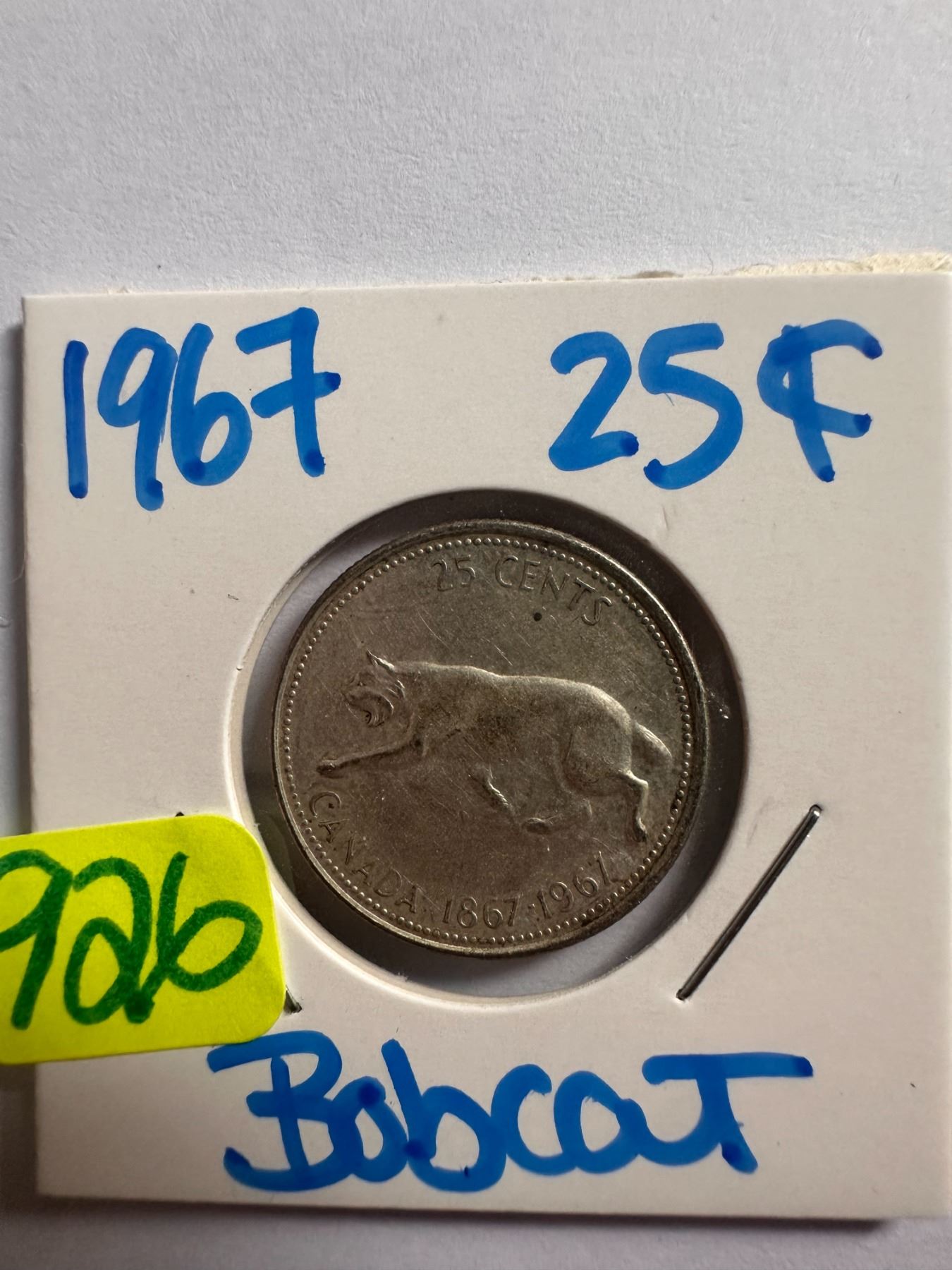 Lot 926 1967 Canadian silver centennial 25 cent coin featuring a Bobcat