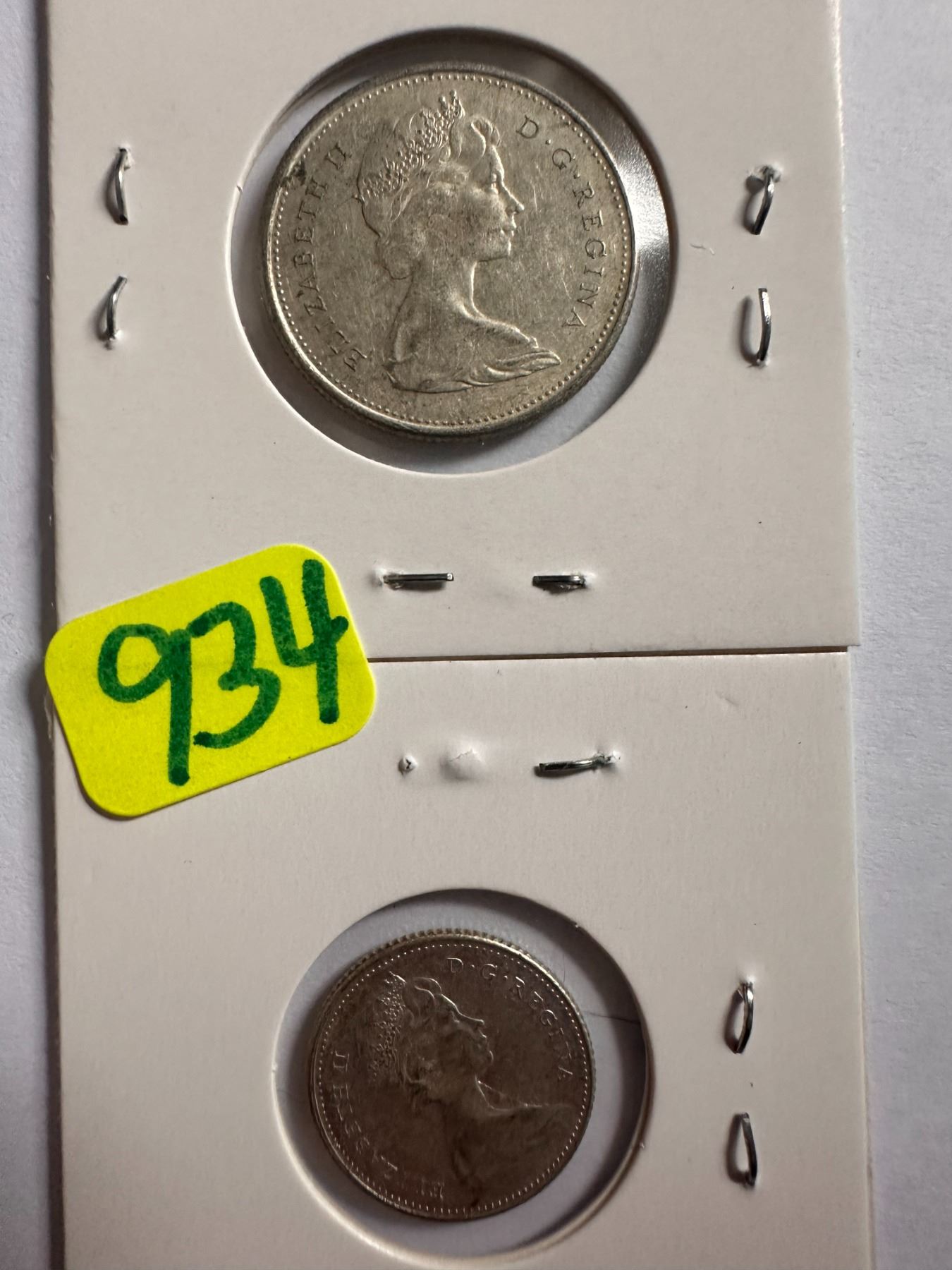 Lot 934 1967 Canadian silver centennial 25 cent coin featuring a Bobcat and a 7 Canadian silver centennial 1