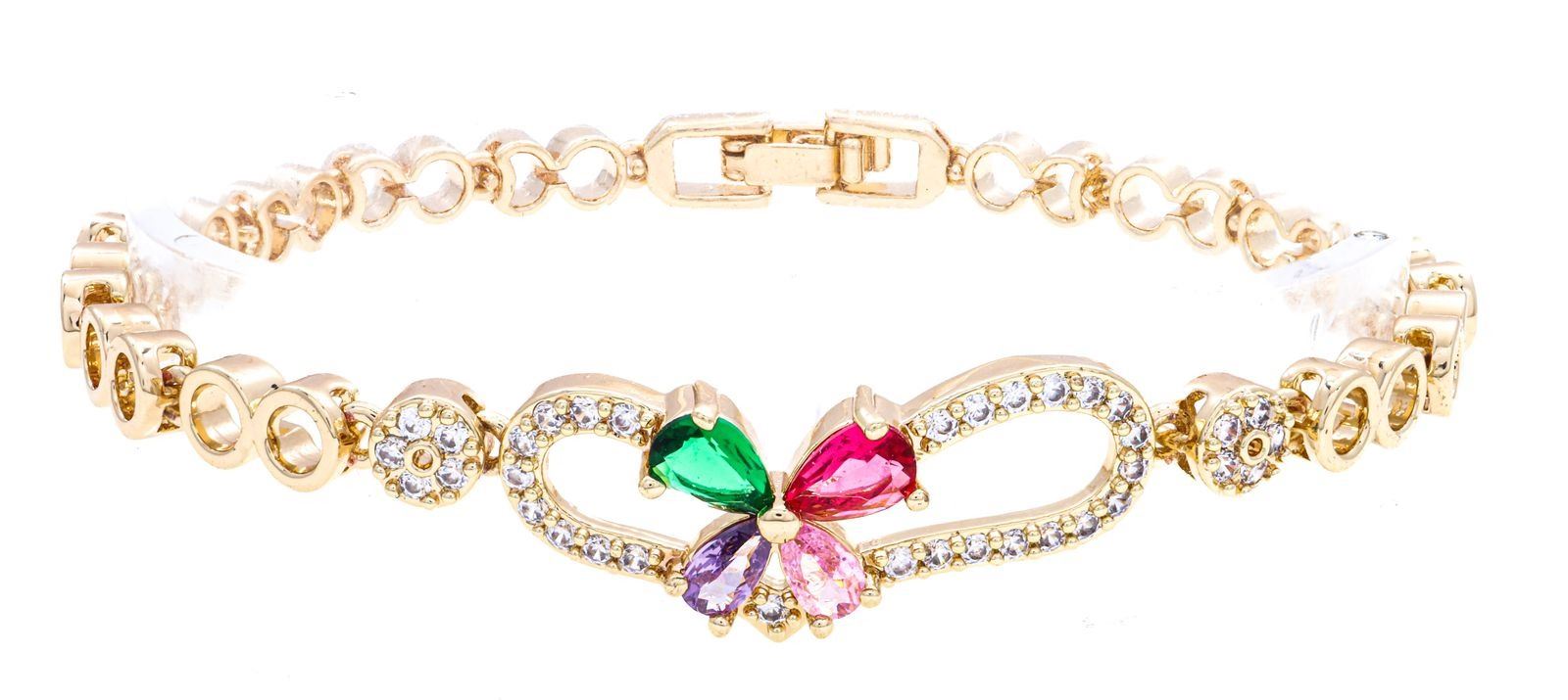 -18kt Oro Laminado Bracelet, Heart Shape, Colour Stones Ð 1505