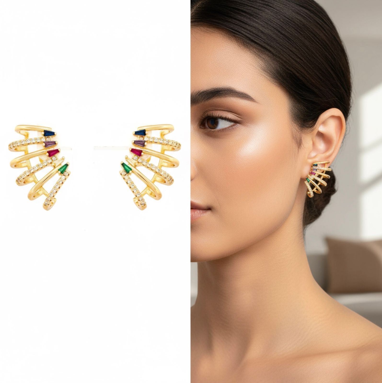 18kt Oro Laminado Earrings, 6 "C" Styles Butterfly Back, Gemstones Ð 1479