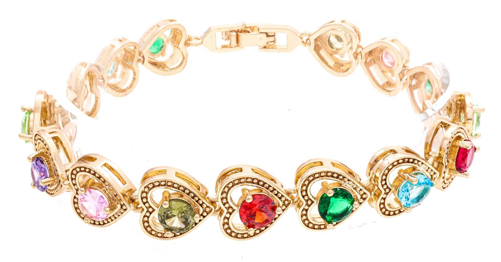 Lot 31 18kt Oro Laminado Bracelet, Multi colour Heart Gem