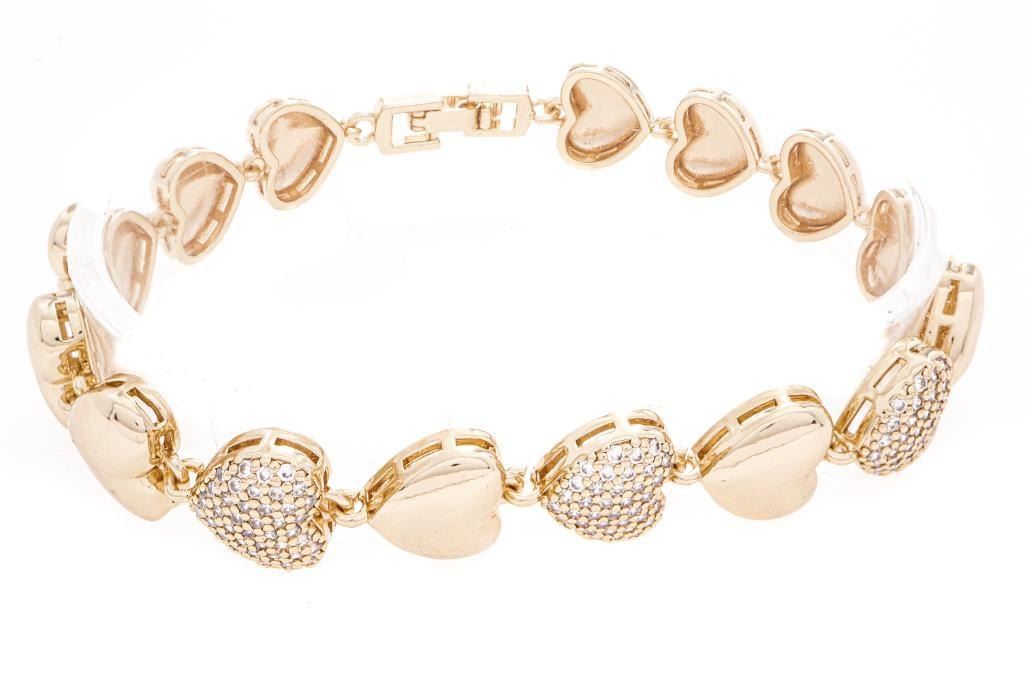 18kt BGO Heart Link Bracelet Pave Hearts Gemstone (7.5") - 7306677.5 - 18BRA~103 Ð 18BRA-103