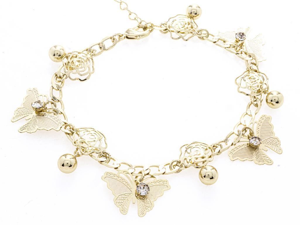 Lingna 18kt Oro Laminado Butterfly & Bead Bracelet Ð MOV-361