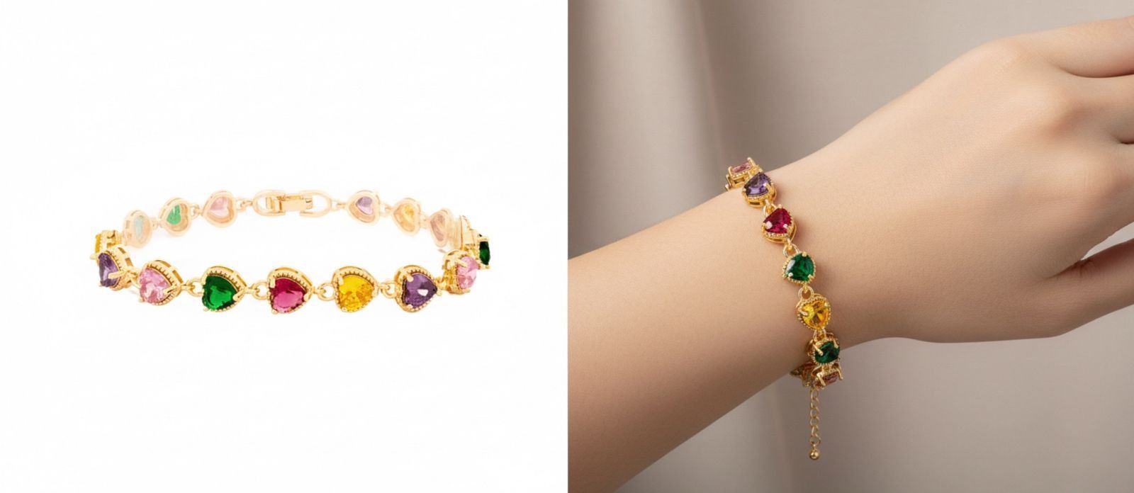 18kt Oro Laminado 15 Heart Cut Gemstone Bracelet Multi Colour Ð A3005