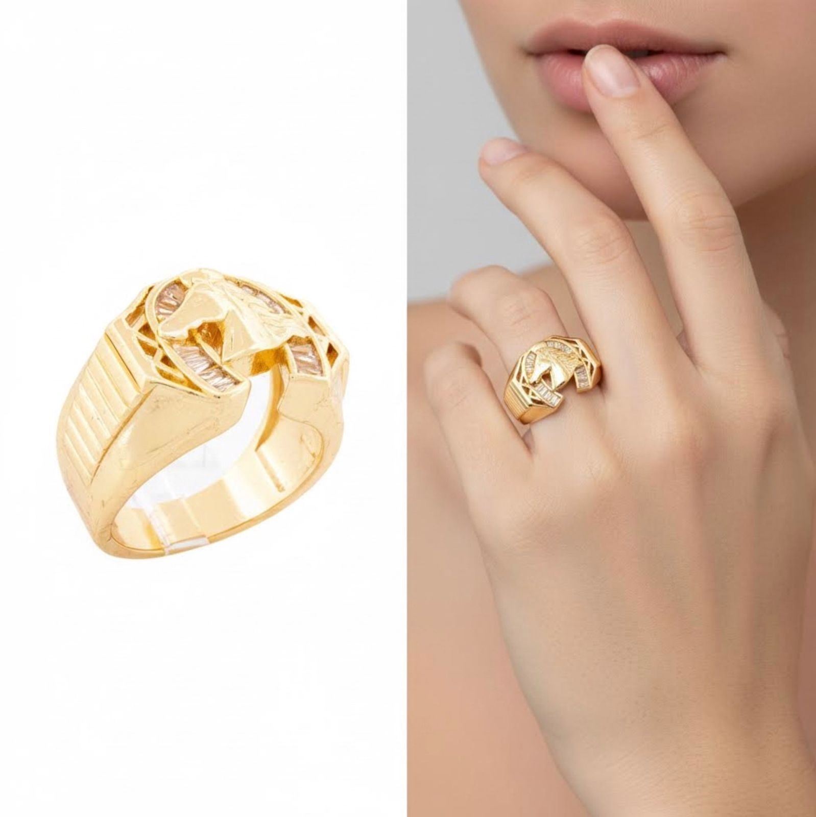 Lot 167 18kt Oro Laminado Horse Shoe Style Ring Set w/ Bag