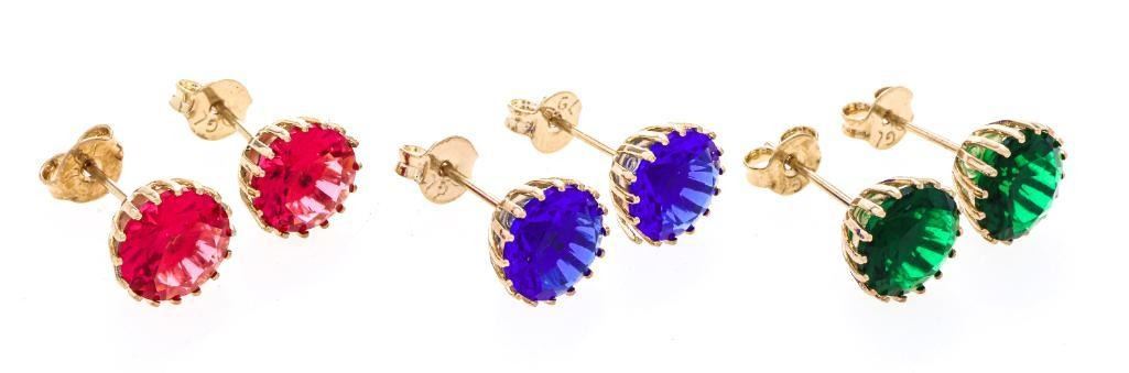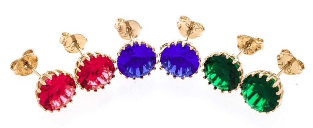 Set of 3 - 18kt Oro Laminado Stud Earrings - Blue, Green & Red Gemstones - 100 Ð LIGA-408