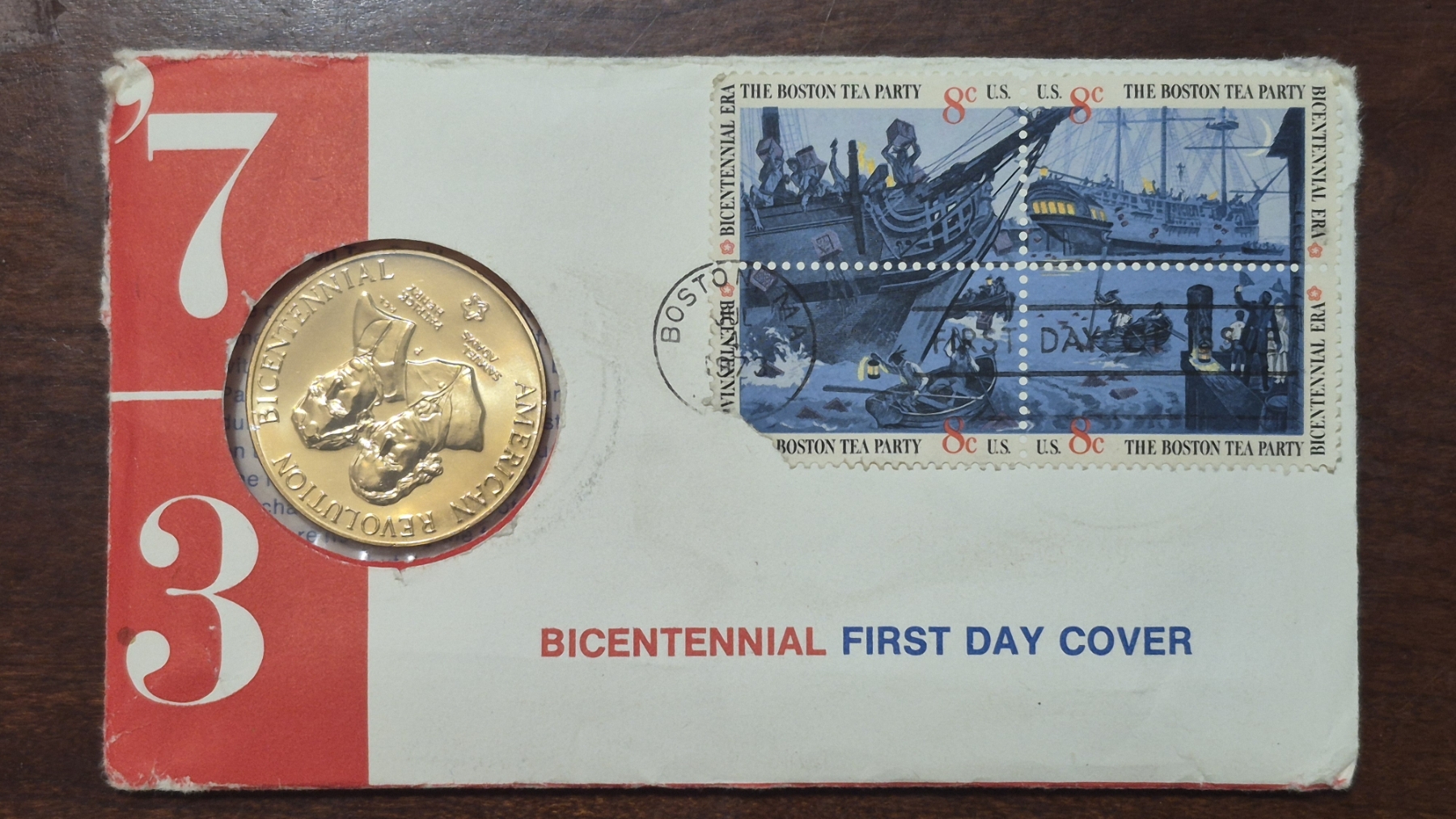 US COINS - UNITED STATES MINT 1973 BICENTENNIAL COMMEMORATIVE MEDAL & FIRST DAY COVER