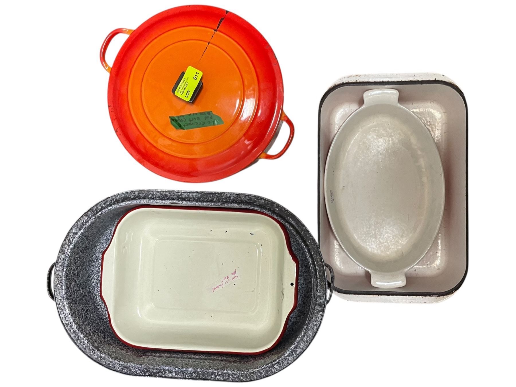 Lot 611 Collection of Kitchen Pans Including a Le Creuset Orange Pot