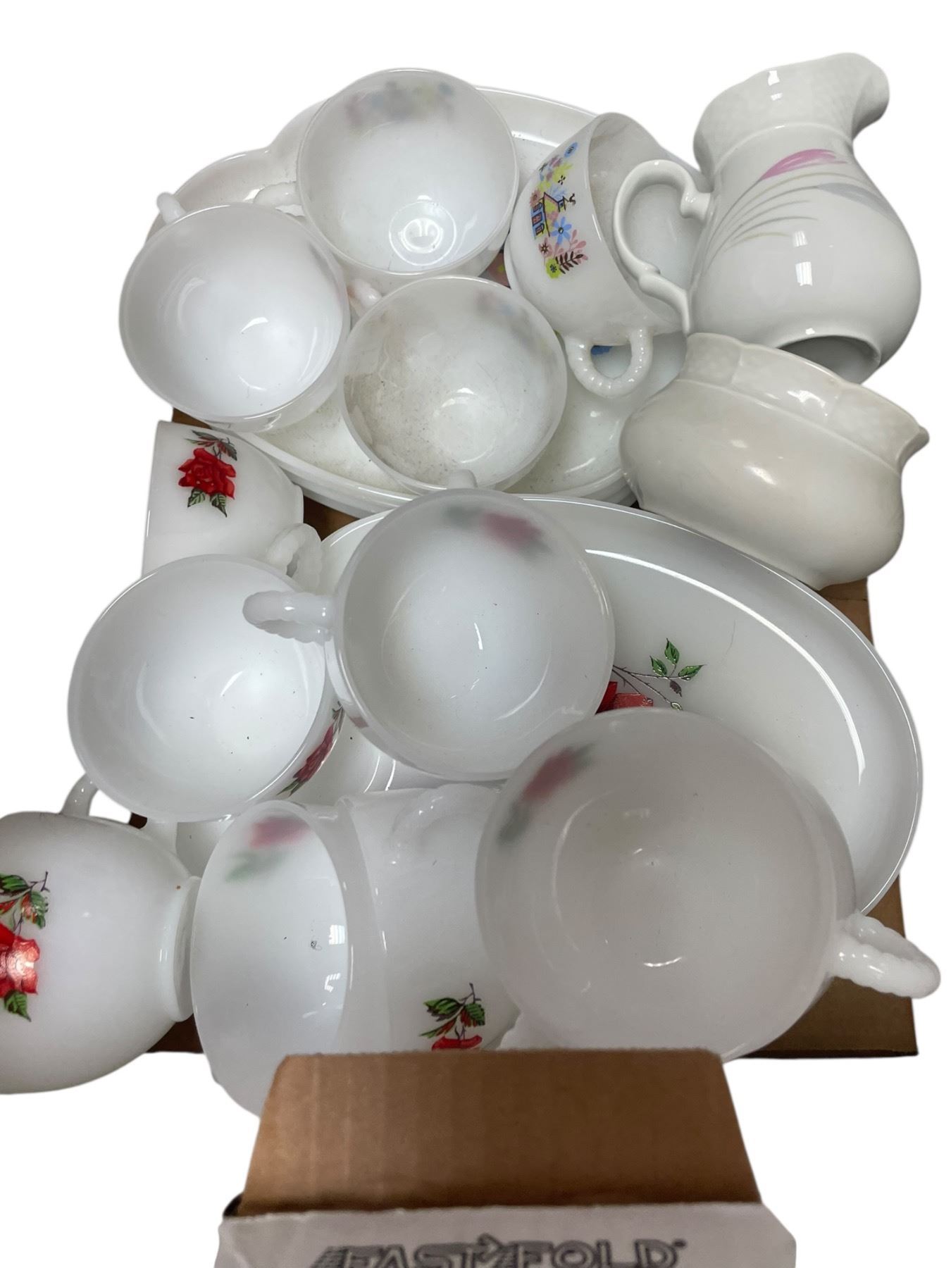 Lot 616 Vintage Federal Snack Sets in Chalet & Rosecrest Pattern Plus Assorted Bone China Items