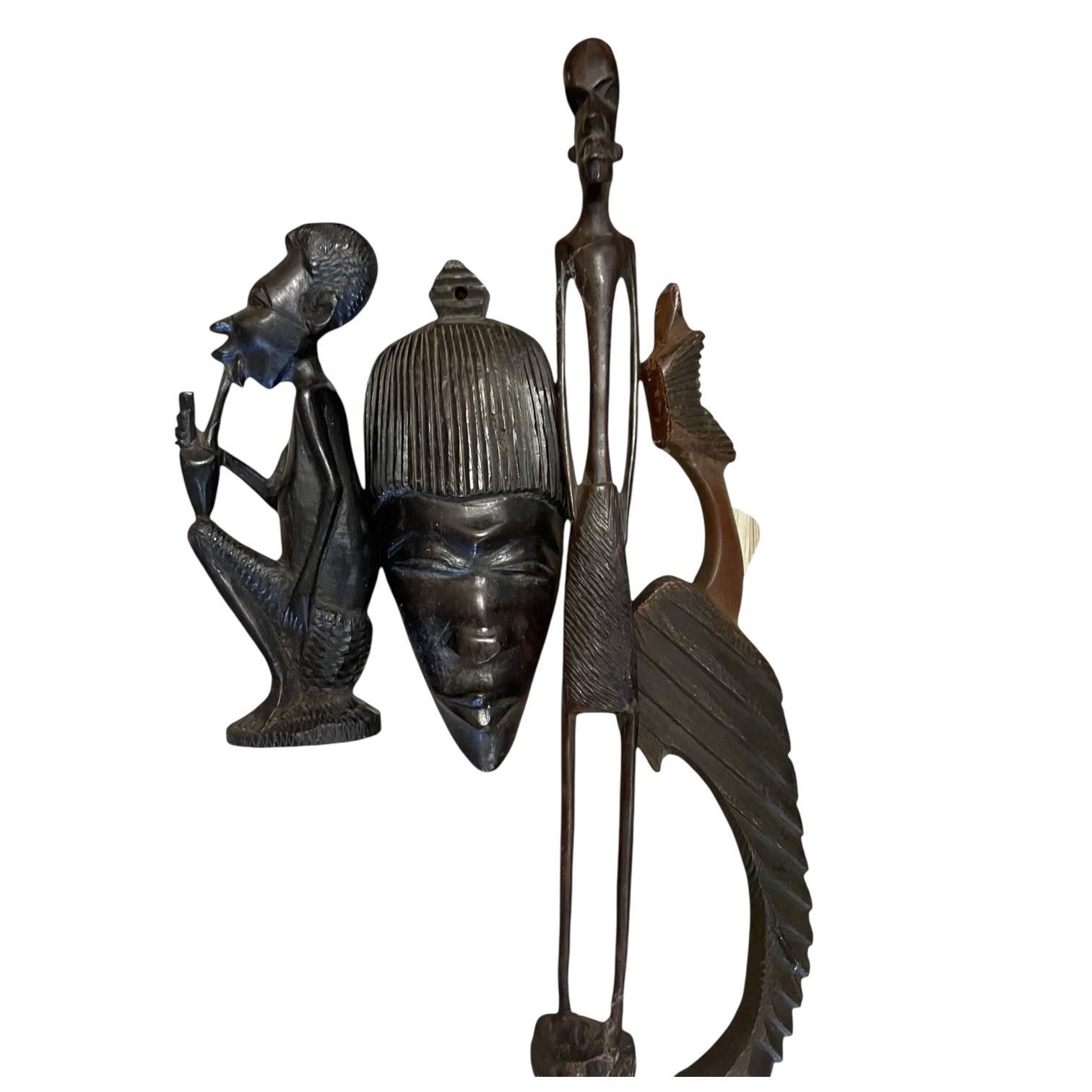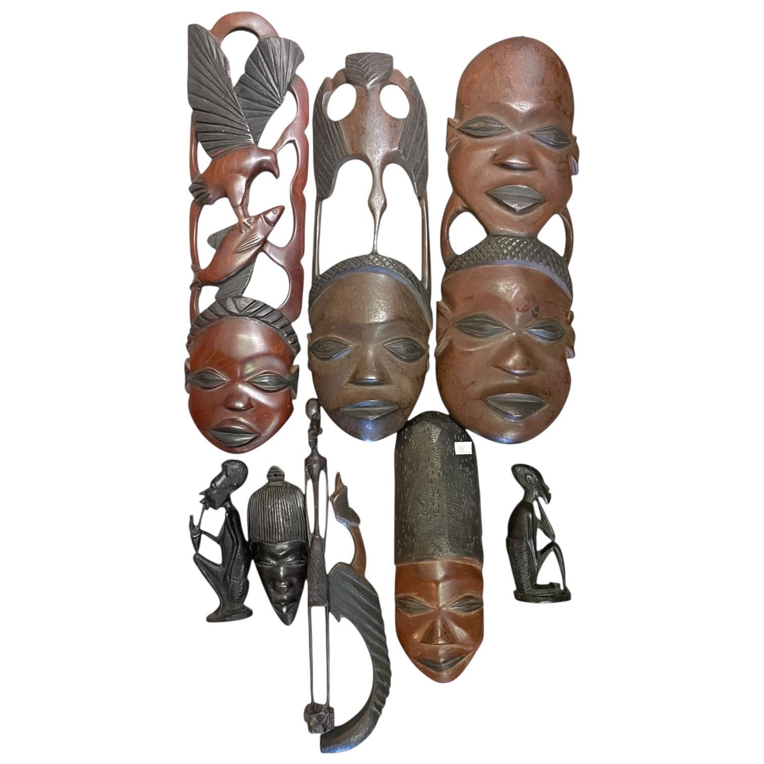 Carved African Masks & Ornaments (Largest is a wall mask: 6" x 15" tall)