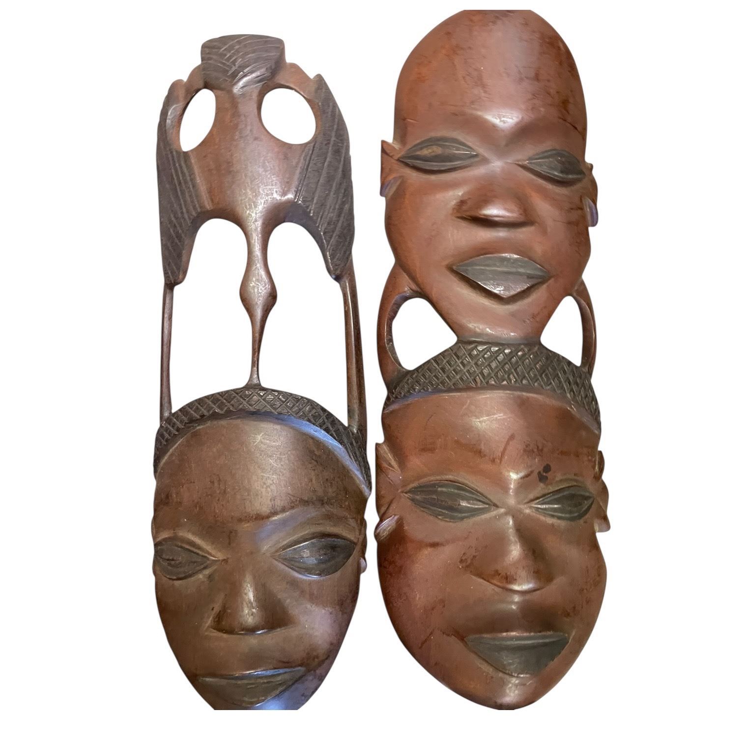 Lot 666 Carved African Masks & Ornaments (Largest is a wall mask: 6" x 15" tall)