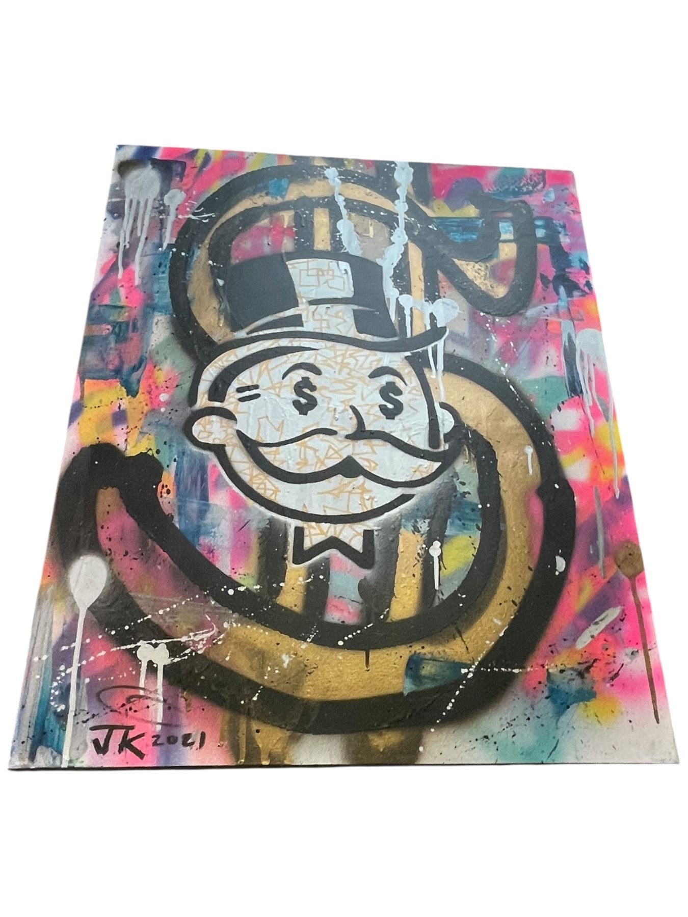 Lot 689 2021 Signed J. K. Graffiti Style Painting on Canvas of "Mr. Monopoly" (24" x 30" stretched canvas)