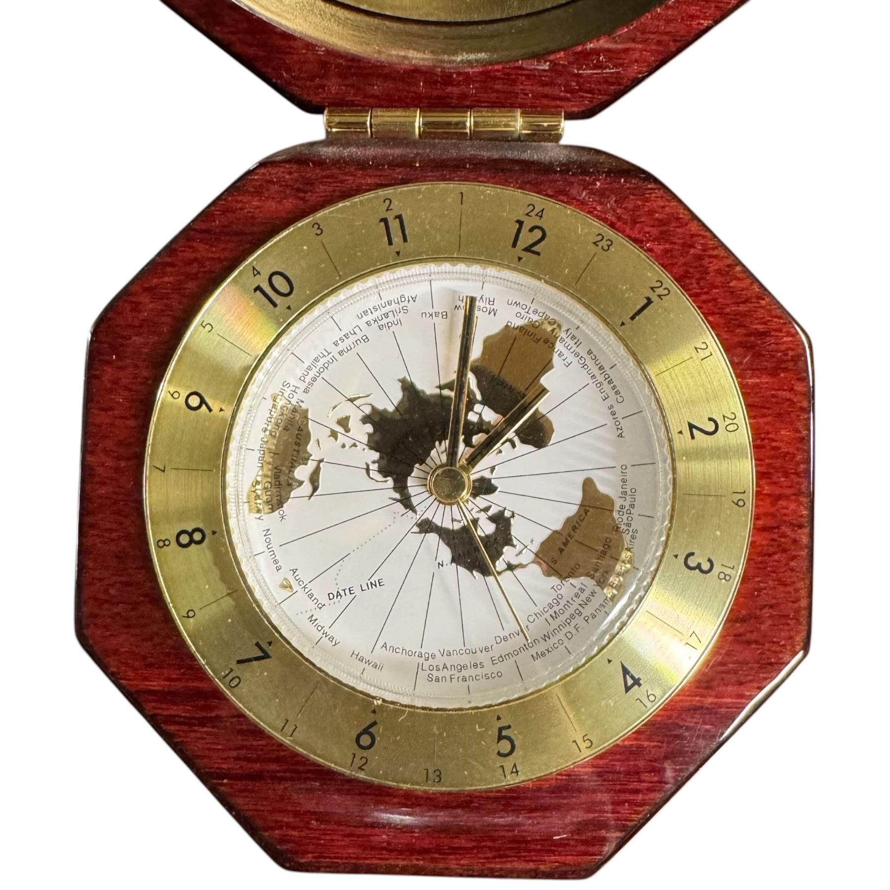 Lot 701 Beautiful Wood Box World Clock 5x5x4"