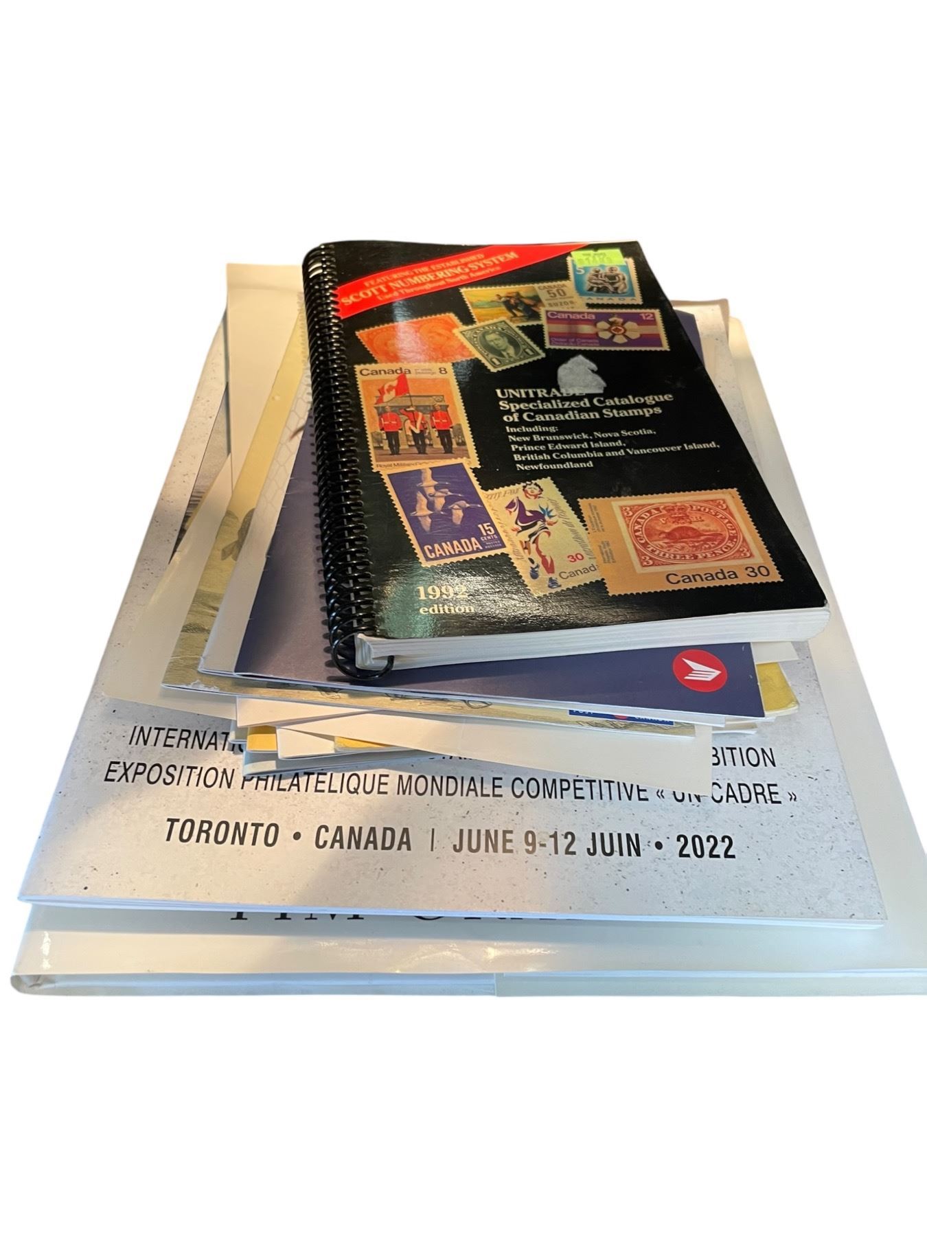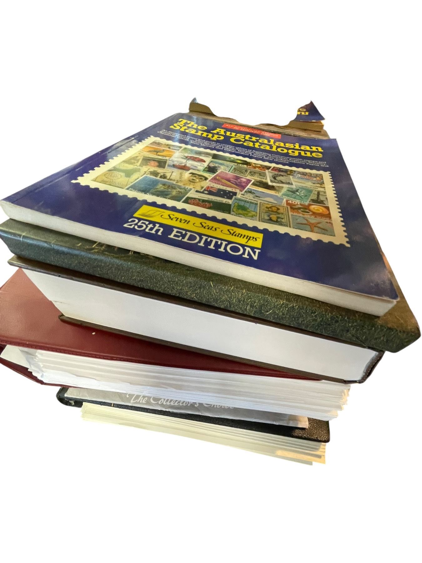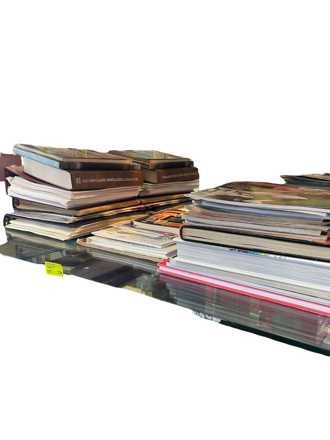Lot 704 Shelf Lot of Stamps, Stamp Catalogues, Sports Magazines and Hard Cover Books