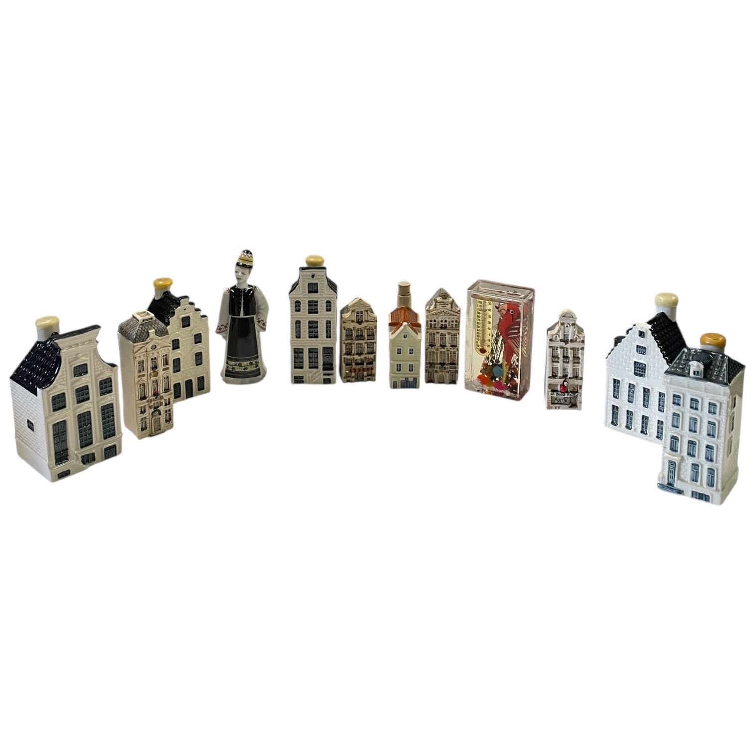 12 Bols Liquor Mini Decanters, Figurines & a Thermometer