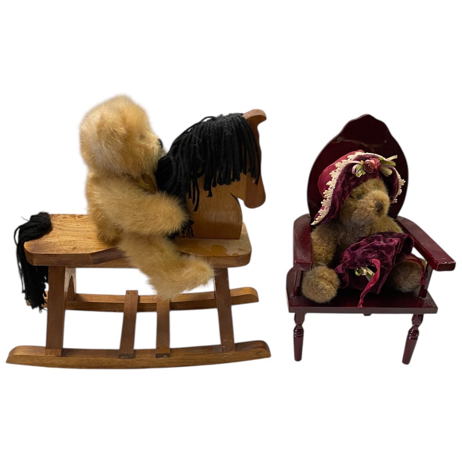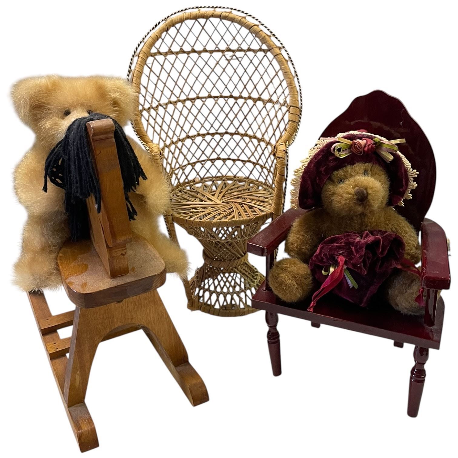 Lot 752 2 Doll Chairs & Doll Rocking Horse with Bears