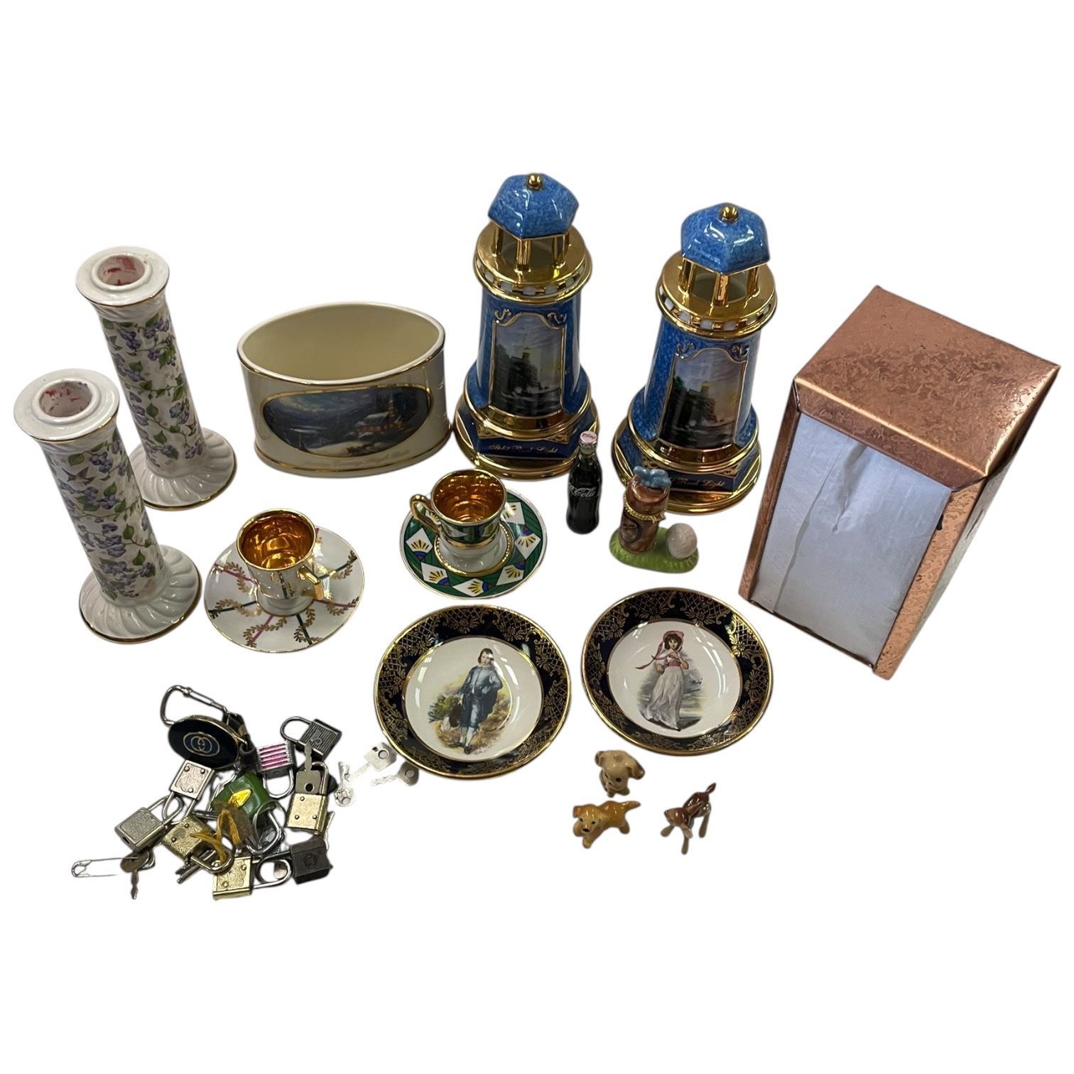 Lot 767 Group of China Collectibles, Metal Serviette Dispenser & Many Tiny Locks
